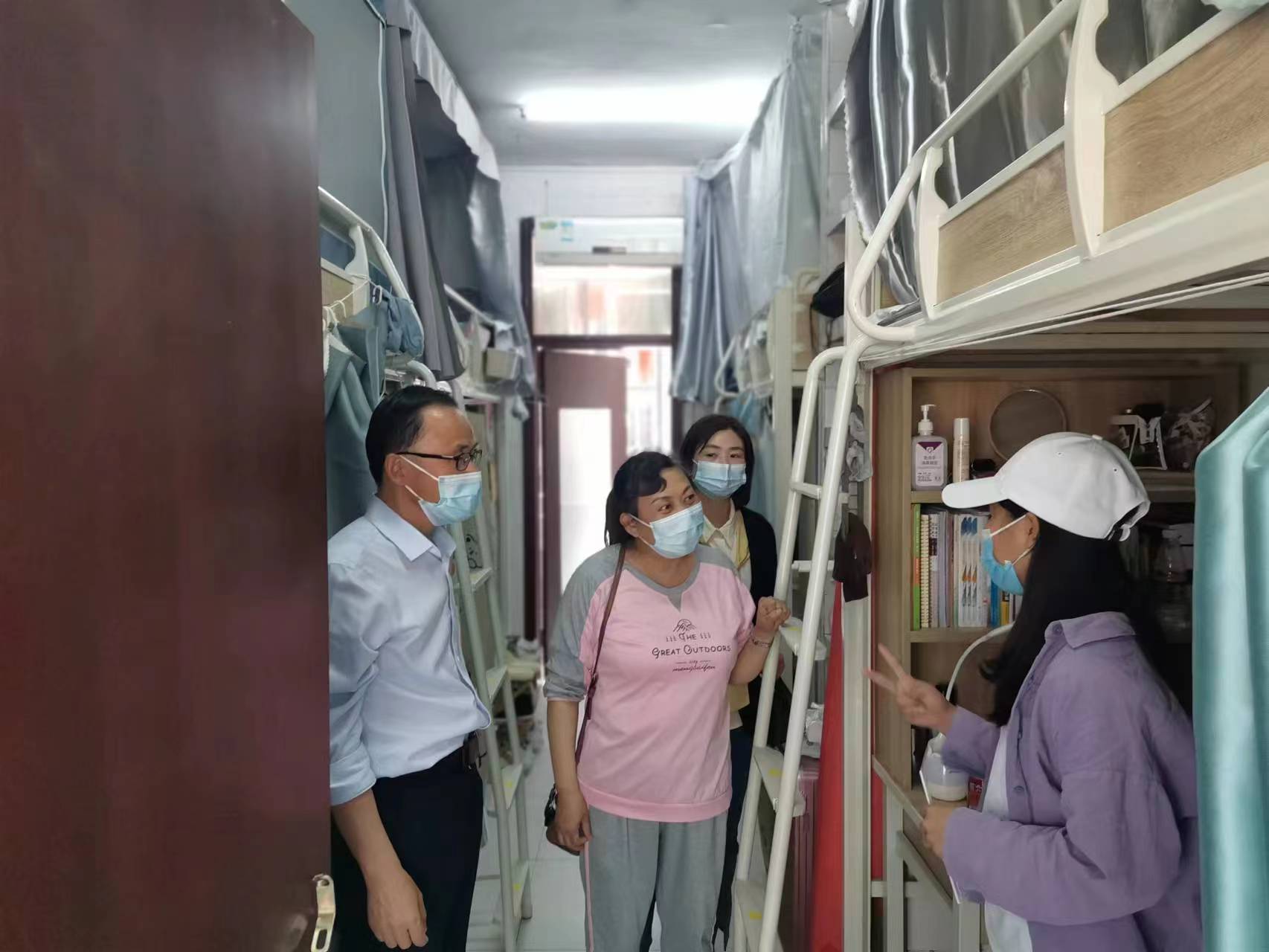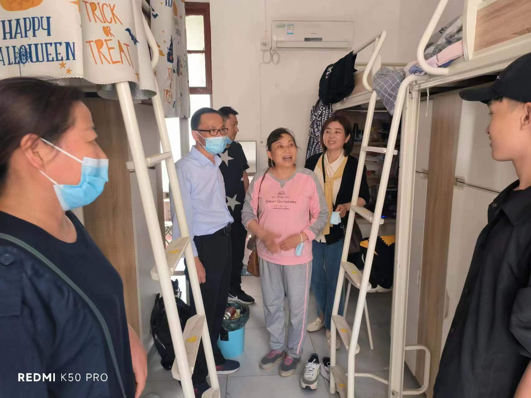 为筑牢疫情防控安全屏障,深入了解员工学习生活和思想动态,关怀员工的心理健康状况,5月17日中午12:00,公司党总支书记张青、经理何中林、公司党总支副书记胡永红、副经理姜国松及各年级辅导员一行深入员工宿舍,走访看望员工,为同学们送去关怀和温暖。